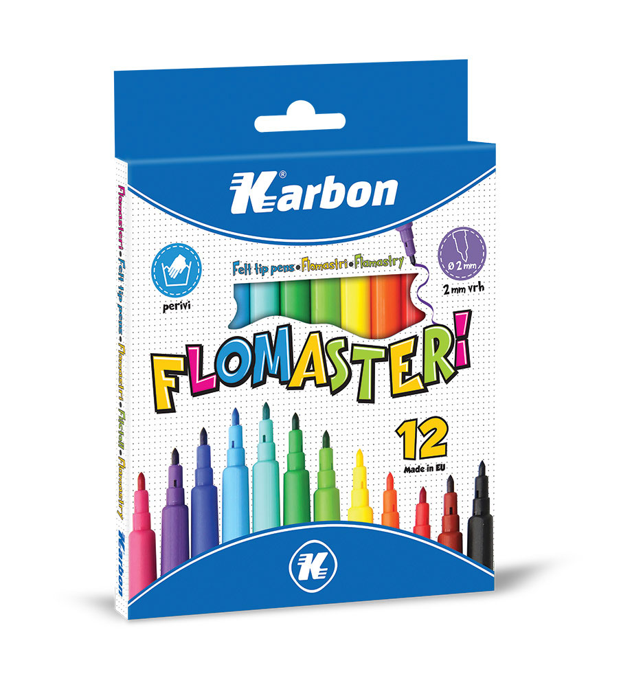 Karbon školski flomasteri pogodni za crtanje po svim vrstama papira Flomasteri imaju ventilirajuću kapicu kako bi djeca bila sigurna pri njihovom korištenju Lagano se ispiru s kože Vrh flomastera debljine 2 mm