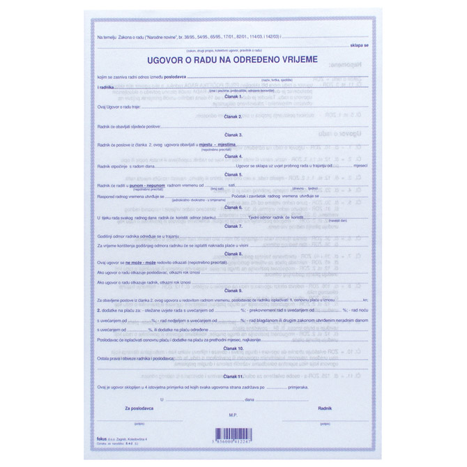 Obrazac E-4-2 ugovor o radu na određeno vrijeme količina