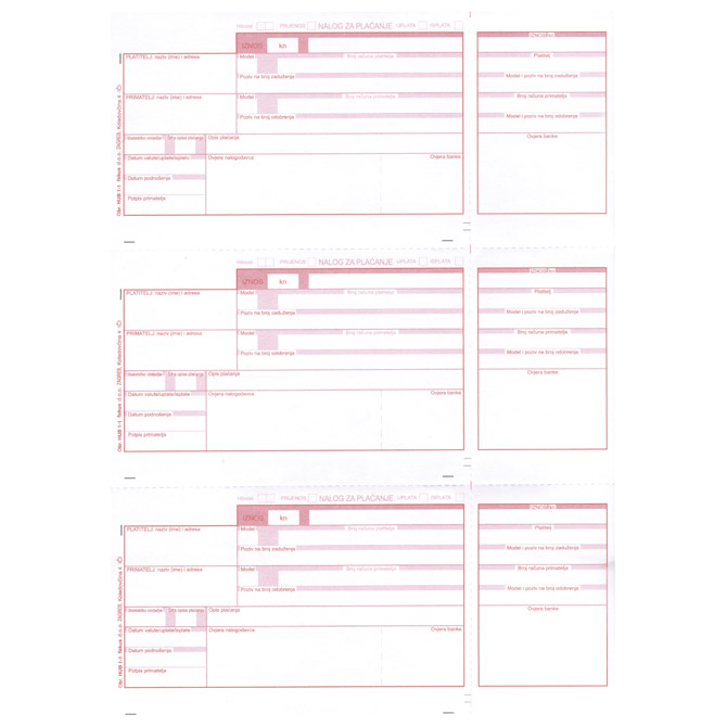 Obrazac HUB 3A Laser 1500 listova (4500 kom) s priznanicom 3 na listu količina
