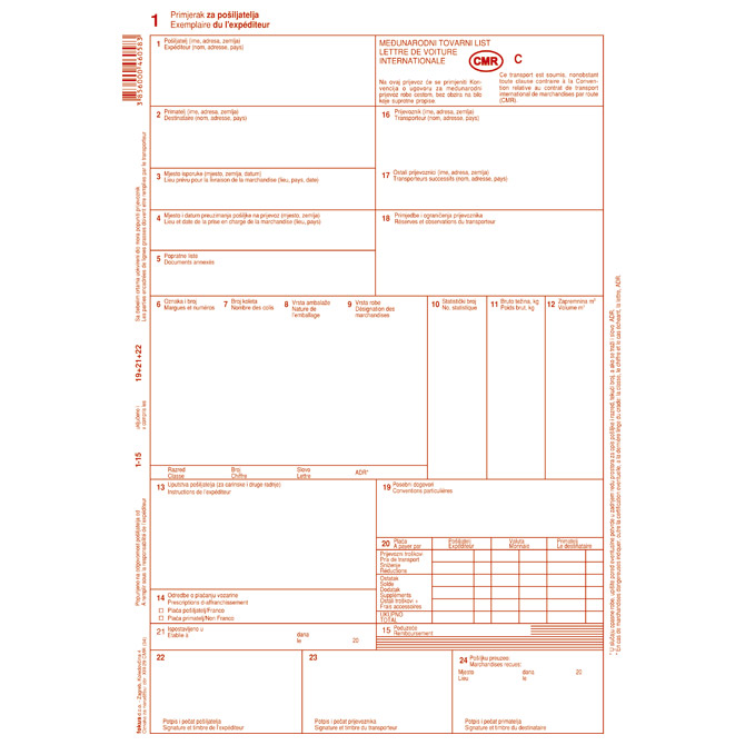 / Obrazac XIII-29 CMR međunarodni tovarni list