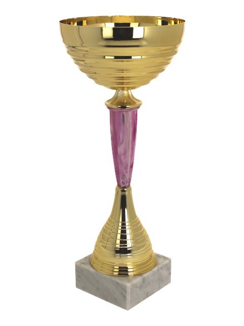 Elegantni zlatni pehar s rozim detaljima visine 21,50 cm, promjer kape 8 cm savršen je dodatak za sve sportske događaje.
