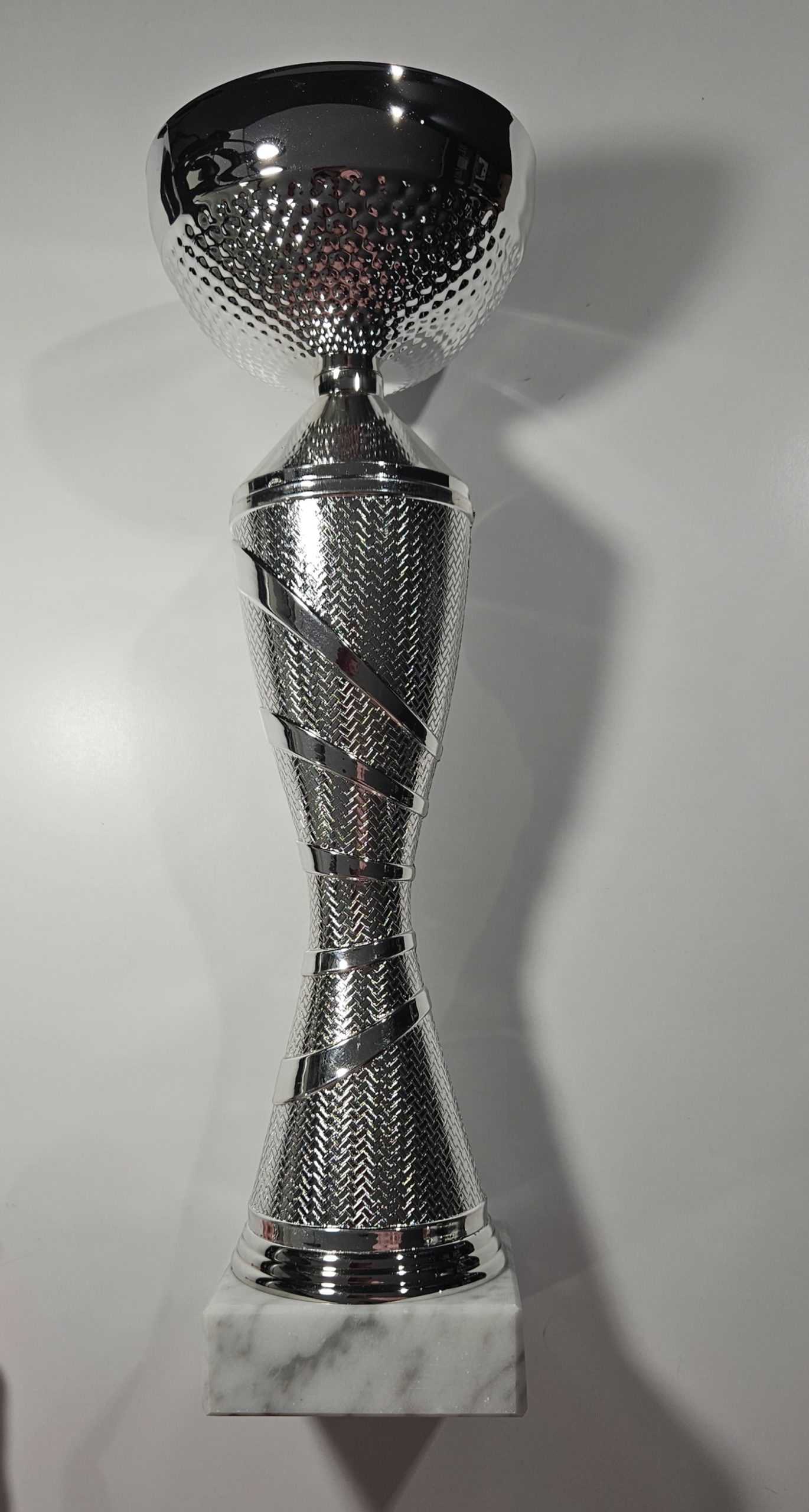 Srebrni elegantni pehar visine 46,00 cm s promjerom kape od 16cm predstavlja sofisticiranu i luksuznu opciju za nagradu.
